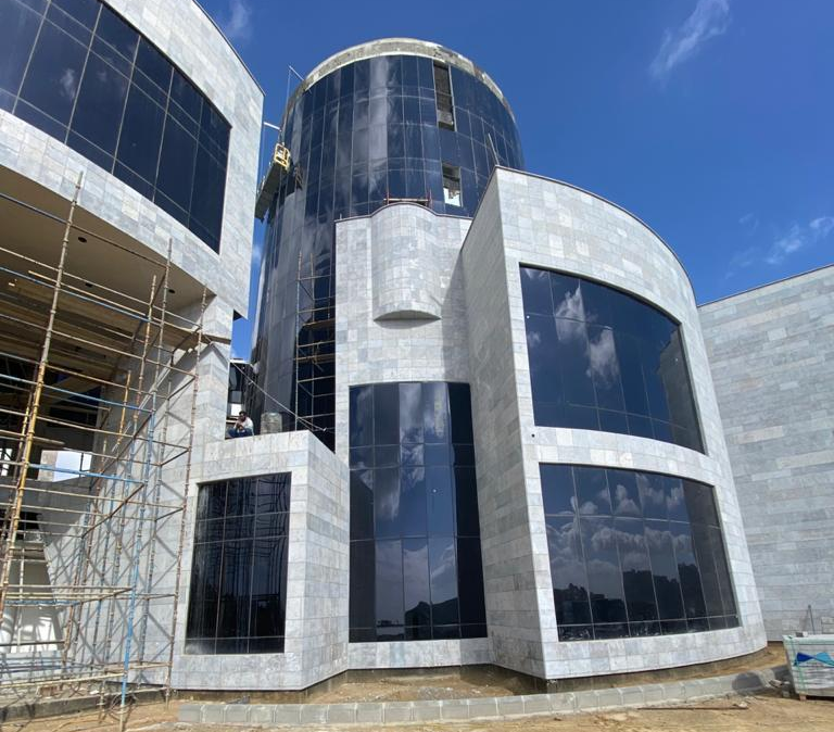 مجمع متعدد الاستخدامات تم توريده ببلاط أرضيات وكسوة جدران من مواد حجرية مختلفة